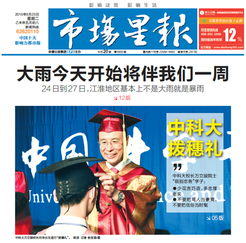 中科大万立骏校长对毕业生进行“拨穗礼”
