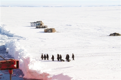 第一次冰上卸货时遭企鹅“围观”