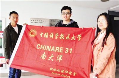 参加科考的王建成、包韬、杨连娇(从左到右)三位同学