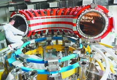近日,由我国完全自行设计的首台大型反场箍缩磁约束聚变实验装置(KTX,中文简称“科大一环”),在中国科学技术大学进入最后整体安装调试阶段。该装置将为国内外从事等离子体物理研究的科研人员提供一个全新的大型实验平台,对中国磁约束聚变领域高端人才培养,发展磁约束聚变能科学技术研究事业具有重要意义。□新华社发