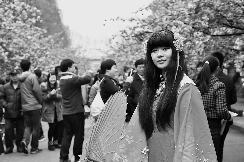 4月6日,中国科学技术大学信息技术学院一名学生身着汉服带领游客观赏樱花。当日,位于安徽合肥的中国科学技术大学举办“春风汉韵”樱花游园会。雨中盛开的樱花和身着汉服表演的学生吸引了众多游客。