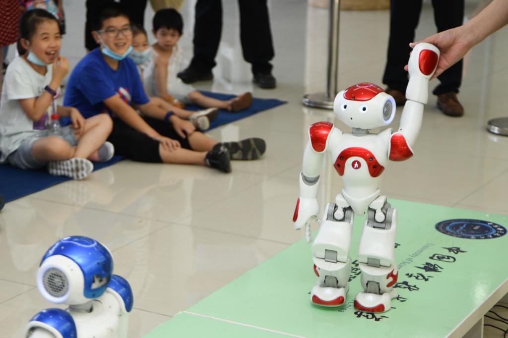 8月29日,观众在中国科学技术大学信息科学技术科普点观看智能机器人表演。