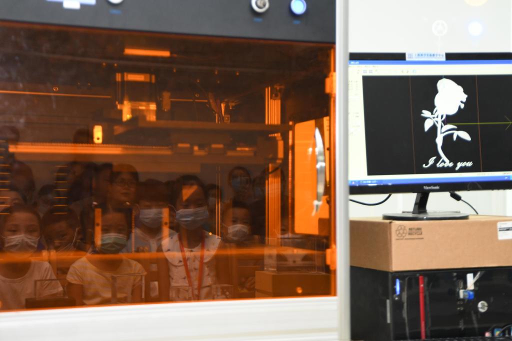 8月29日,观众在中国科学技术大学工程科学科普点了解激光内雕技术。当日,中国科学技术大学科技活动周在合肥开幕,校内的博物馆、工程科学科普点、火灾科学国家重点实验室等场所面向观众开放。新华社记者 张端 摄