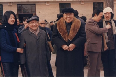 1988年,严济慈(右一)与钱临照(右二)在中国科大校园。