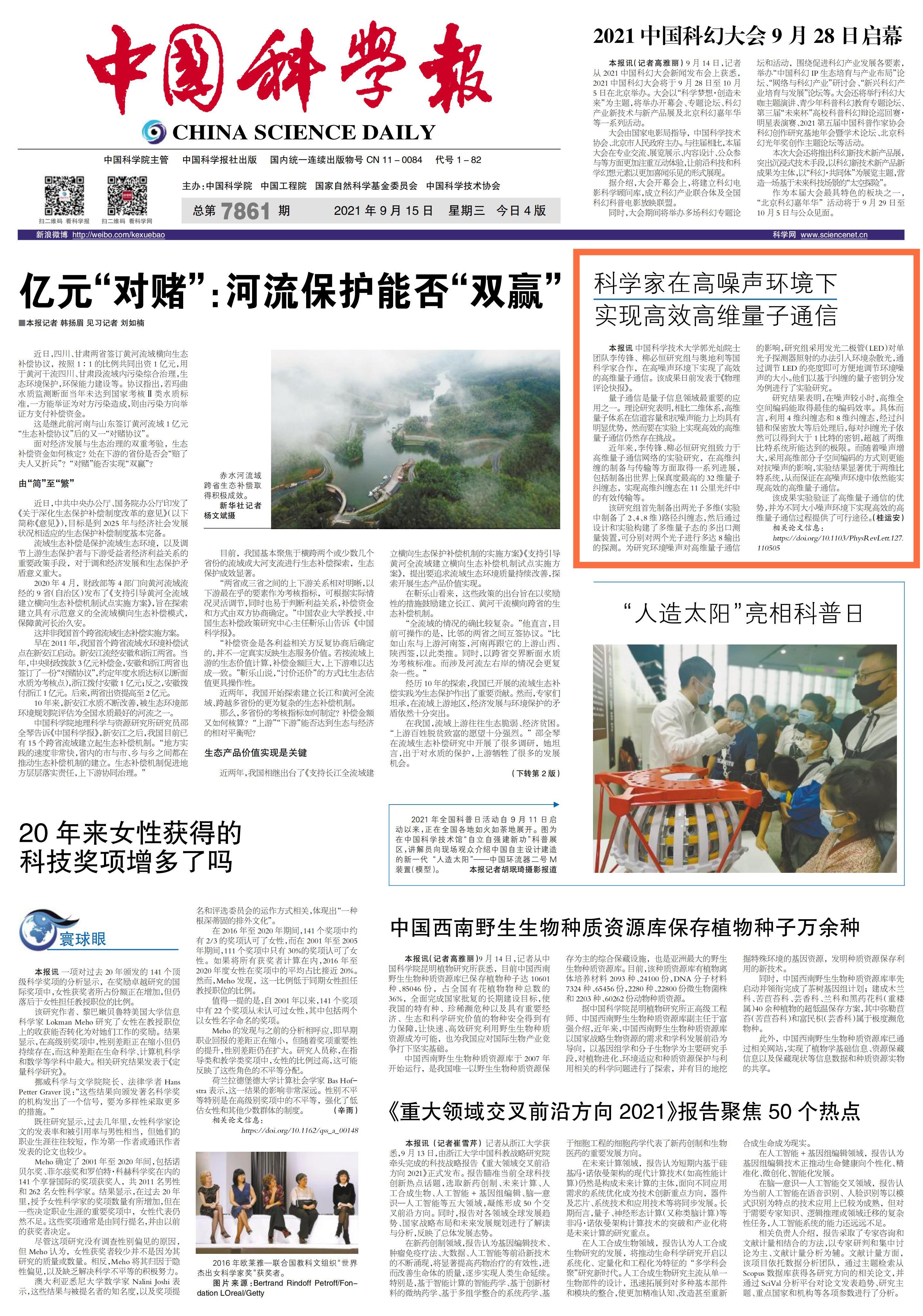 《中国科学报》 (2021-09-15 第1版 要闻)