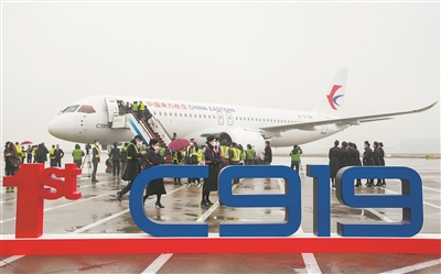 12月9日,一架编号为B-919A的C919大型客机从上海浦东国际机场启航飞往上海虹桥机场。