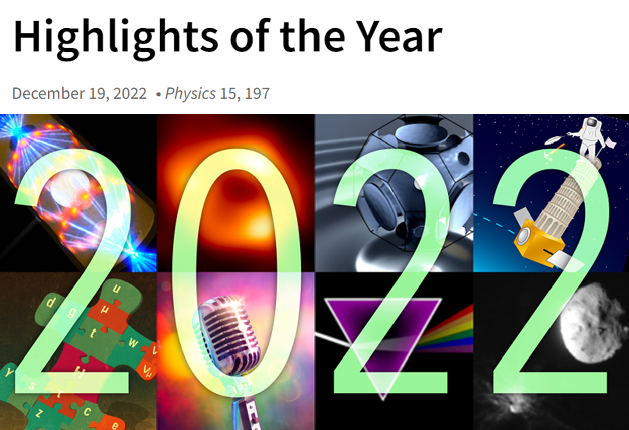北京时间2022年12月20日,美国物理学会旗下的物理学网站公布今年的国际物理学领域的十项重大进展,回顾了2022年国际范围内取得的代表性科研成果。其中,中国科学技术大学潘建伟、陆朝阳、朱晓波、张强等完成的实数量子力学检验系列实验,与激光聚变首次跨越盈亏点、银河系黑洞的第一张照片、詹姆斯韦布空间望远镜拍摄标志性宇宙图像、航天器碰撞改变行星轨道、破译蛋白质折叠等十项研究成果入围。