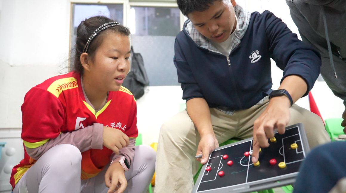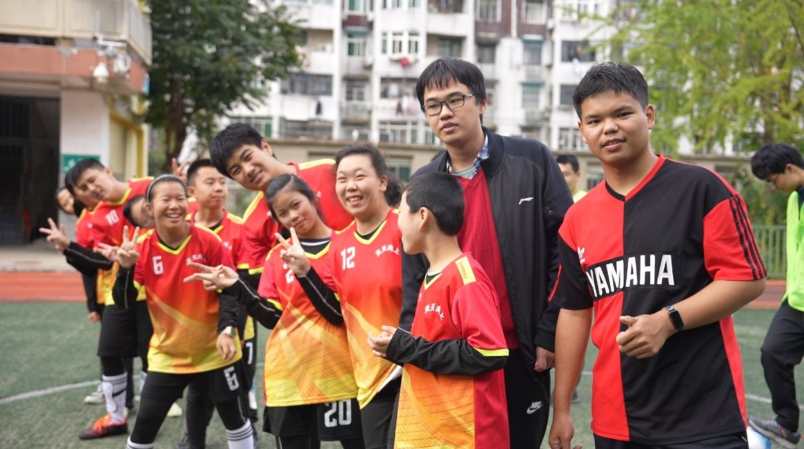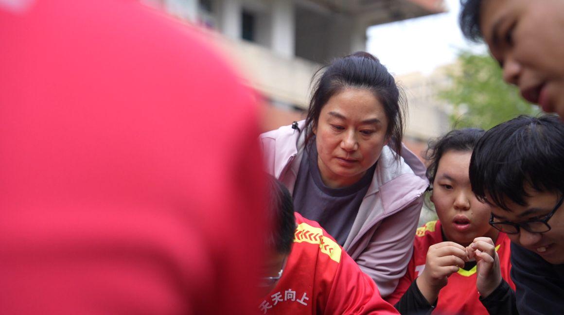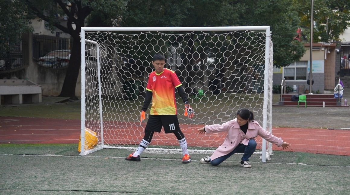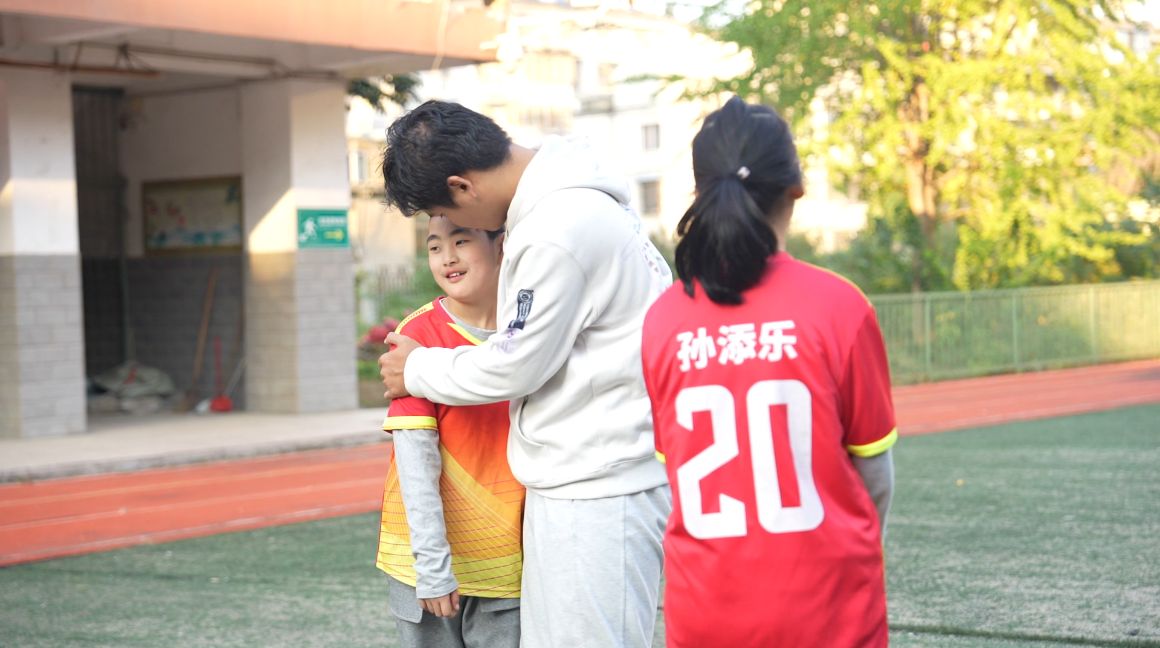 在安徽合肥的这处小小操场上,每周六下午四点,天天向上足球队准时开始训练,这支球队有12名队员,年龄大多在8岁到17岁之间,他们都患有孤独症或者智力发育障碍。球队的主教练方浩然,是中国科学技术大学地球和空间科学学院的大四学生。从不会踢球到传球、带球、射门……在方浩然的耐心带领下,孩子们的球技一步步地成长起来。球场边,家长们总会搬来小板凳坐下来围观,他们常常兴致勃勃地讨论孩子们今天踢得好不好,有时妈妈们还会忍不住下场给孩子纠正一下动作,孩子们的每一个小进步,都让他们打心眼儿里高兴。