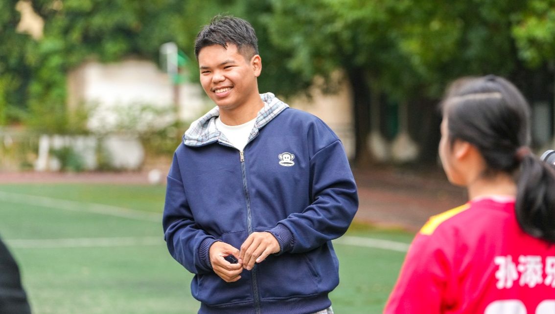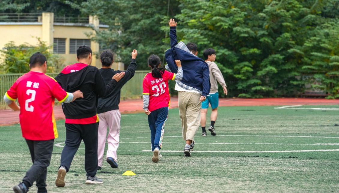 21岁的方浩然大一时就加入了芳草社,此后就成了天天向上康复中心的常客。起初的志愿服务是每周义务劳动和陪伴孩子,看见那些不懂得和外界交流的孩子,总是默默困在自己的世界里,他一直想为他们做些什么。2022年卡塔尔世界杯上,英国球员在进球后,兑现了和一名脑瘫小球迷的庆祝约定,这一幕触动了方浩然,热爱足球的他,也想利用自己的特长,带孩子们享受足球的快乐,走向外面的世界。这个想法得到了康复中心郑丽萍院长的支持,今年3月,在当地街道和教育部门的协调下,康复中心附近的一处小学闲置操场被免费提供给了孩子们使用,足球课也正式开了起来。