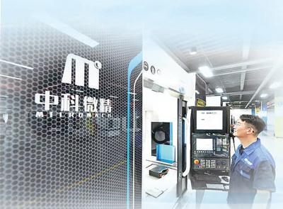 中科微精车间内,工程技术人员正在生产零件。