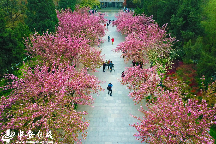 每年三月底、四月初中国科大樱花盛开之际,合肥倾城“赏樱”是踏春之首选,科大每年此时,都向合肥市民开放。今年此时,科大樱花大道上一片芬芳、一簇簇樱花绽开在春阳里,让居住在校内的行人忍不住为之驻足。稀有的绿色樱花更是群芳之中的点睛之笔。