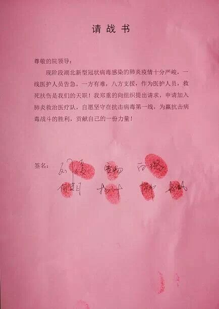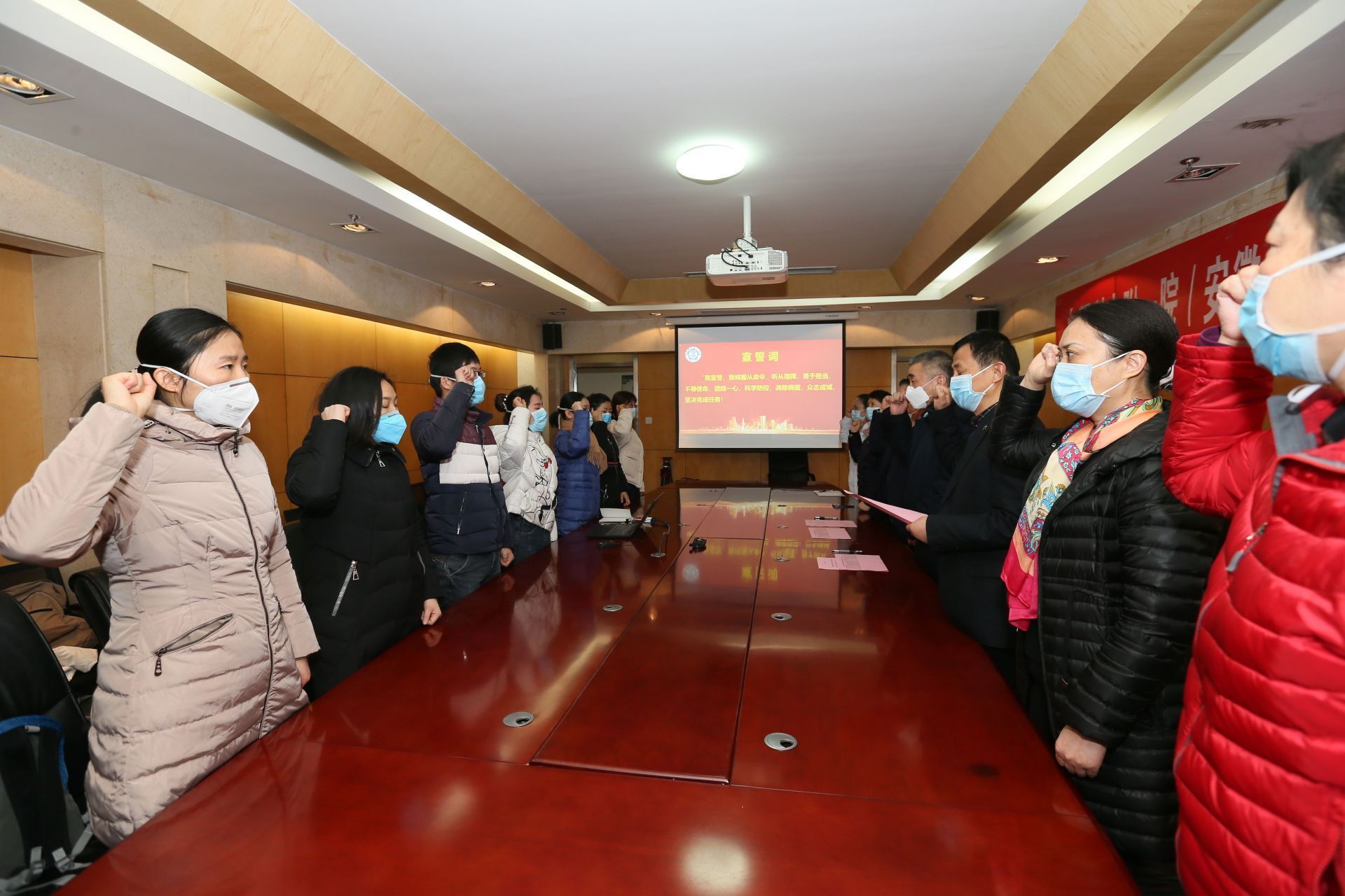 出征前,他们集体向医院递交了请战书,按下红手印。院领导刘同柱、胡礼源、钱立庭、储晓红与队员们集体谈话,为大家壮行。