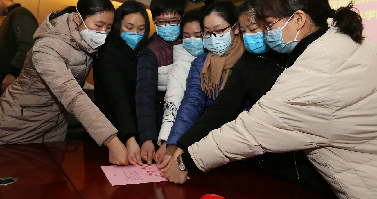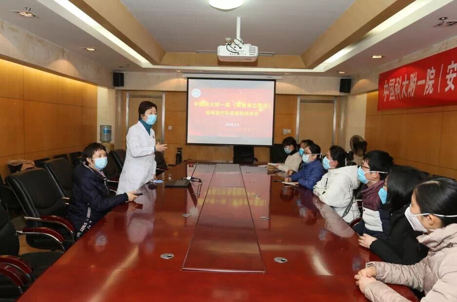 出发前,中国科大附一院第二批援鄂医疗队做了细致的培训,队员们积极沟通、认真记录、相互打气。在宣誓时,7名护理人员目光笃定、热血昂扬,立誓要全力投入到抗击疫情的防控和重症病人的救治中,不辱使命,勇往直前。