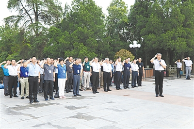 中国科技大学“不忘初心、牢记使命”主题教育读书班全体成员参观金寨红军广场,重温入党誓词。代蕊摄/光明图片