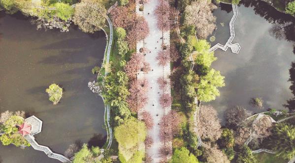 这是3月28日拍摄的中国科学技术大学东区樱花大道(无人机照片)。