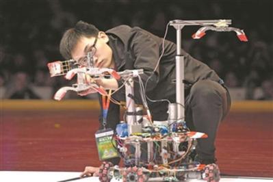10月27日,在位于合肥的中国科学技术大学,一名大学生在比赛前调试机器人。