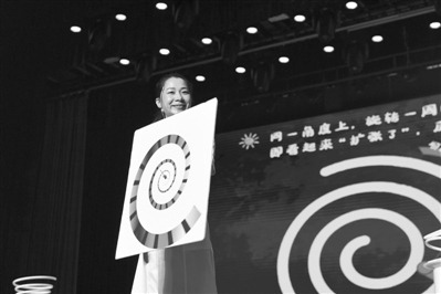近日,主题为“科技强国 科普惠民”的2019年全国科学实验展演汇演活动在中国科学技术大学东校区举行。来自全国各地的实验展演团队为观众呈现了一场妙趣横生的科学表演秀,旨在向全社会普及科学知识,弘扬科学精神。图为来自江苏省科学技术馆的实验展演团队成员在进行科学表演秀《错觉之美——光流运动错觉》。新华社记者 张端摄