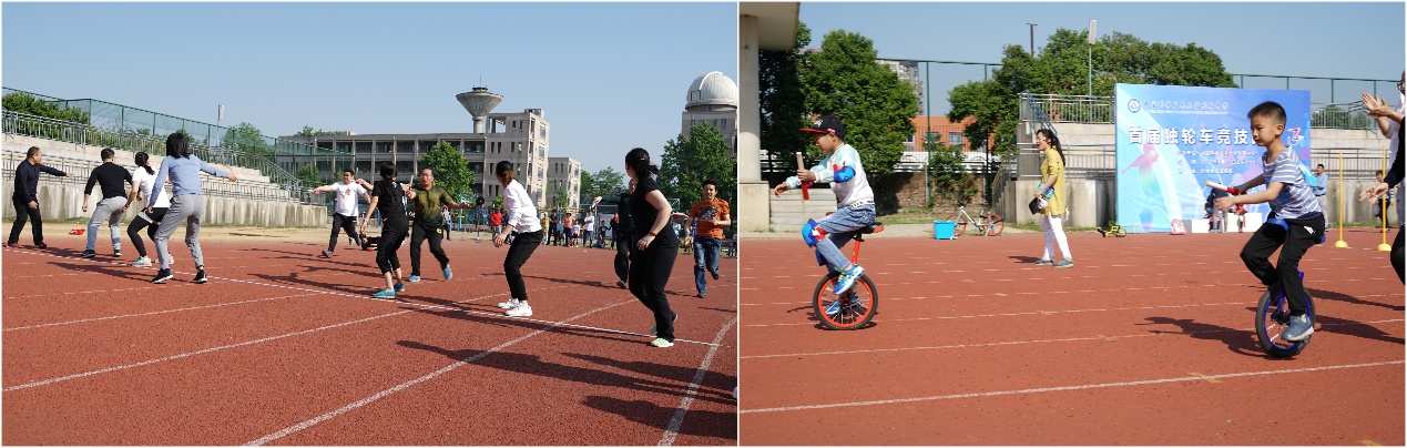 4月29日上午,天气晴好,科大附中首届独轮车竞技比赛在南区田径场举办,来自小学部和初中一年级的近150名运动员参加了比赛。比赛设110米亲子接力、60米和100米、200米竞速、场地障碍、单脚骑、独轮车跳绳等7个项目。比赛还吸引了100多名家长现场观赛、加油助威。