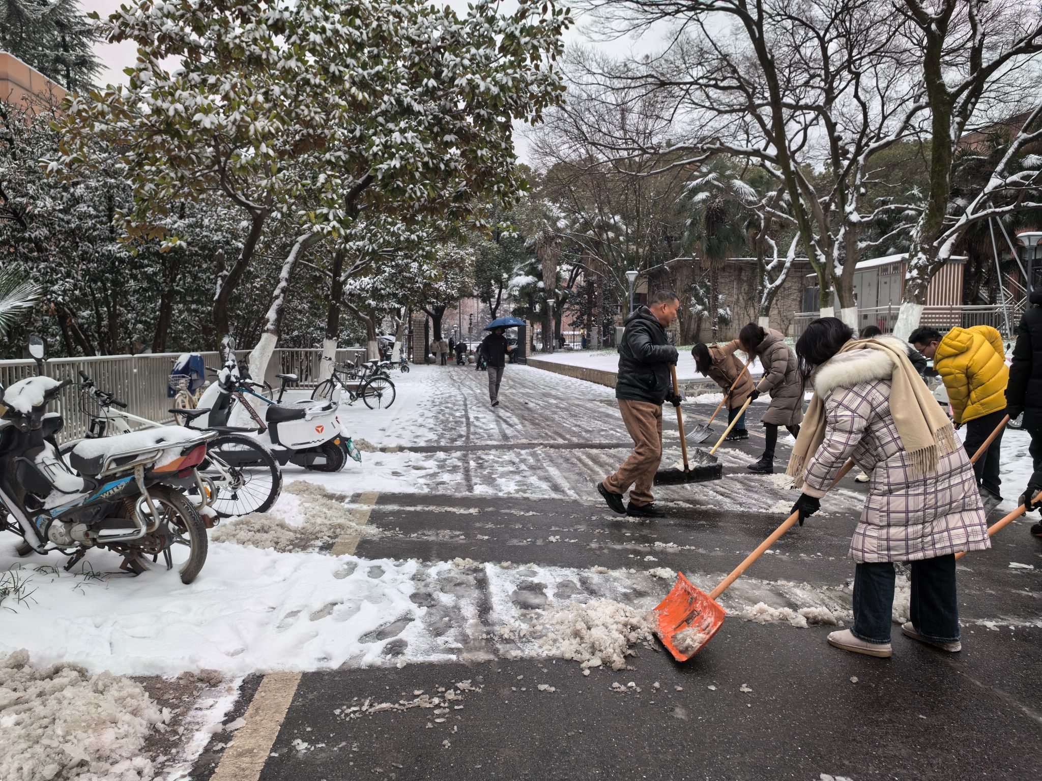 近日,合肥迎来持续低温雨雪天气。1月20日上午,为保障校园安全运行和师生正常出行,机关党委迅速动员、组织机关教职工开展扫雪除冰行动。党委宣传部党支部积极响应号召,第一时间组织支部党员投身扫雪一线。