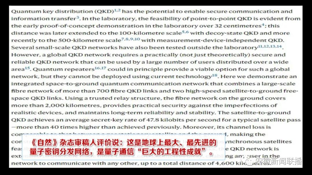 这次组建成功的天地一体化量子通信网络保密性强,目前已接入金融、电力、政务等150多家用户,并通过多种安全性测试,可以最大限度地保障我们的信息安全。这一成果今天发表在国际权威学术期刊《自然》上,审稿人评价说:这是地球上最大、最先进的量子密钥分发网络,是量子通信“巨大的工程性成就。