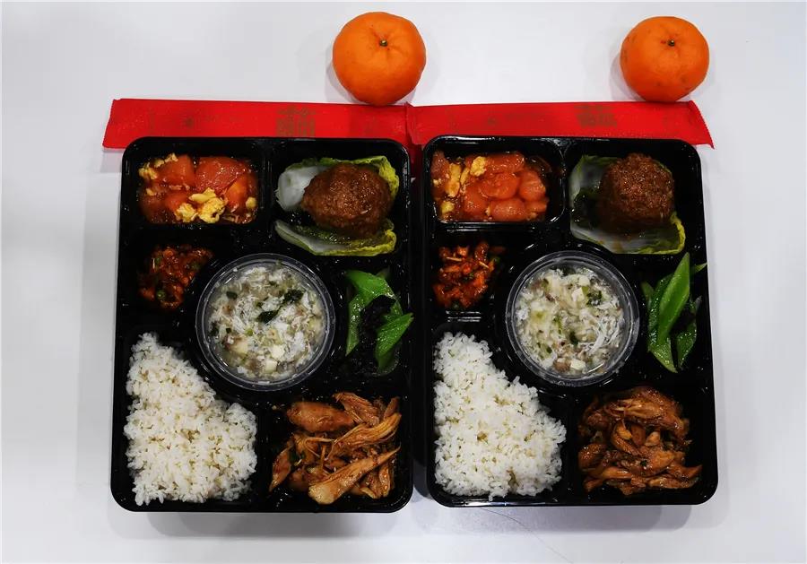 考虑到防疫要求,今年中科大专属年夜饭改用盒饭形式装盛。