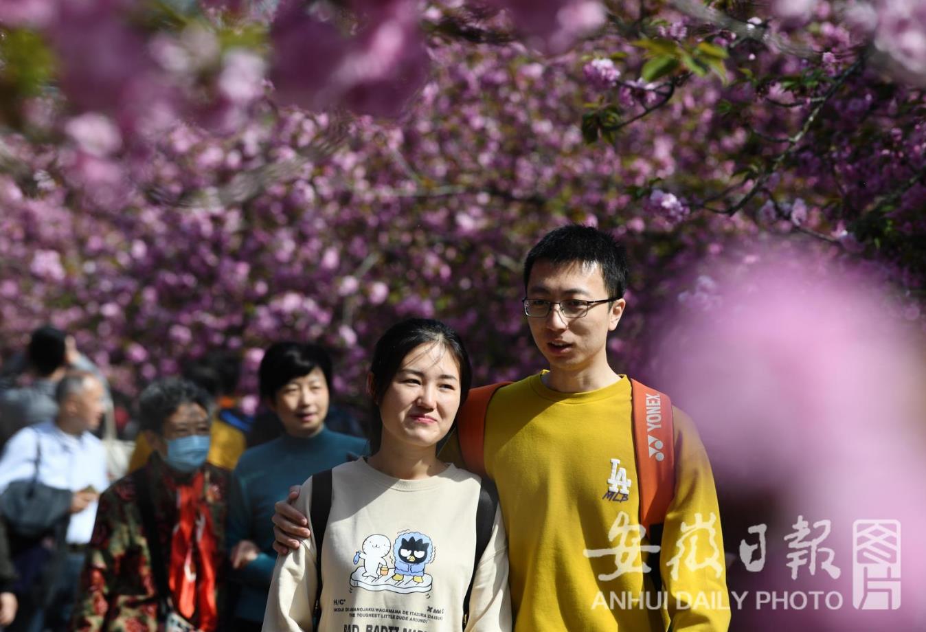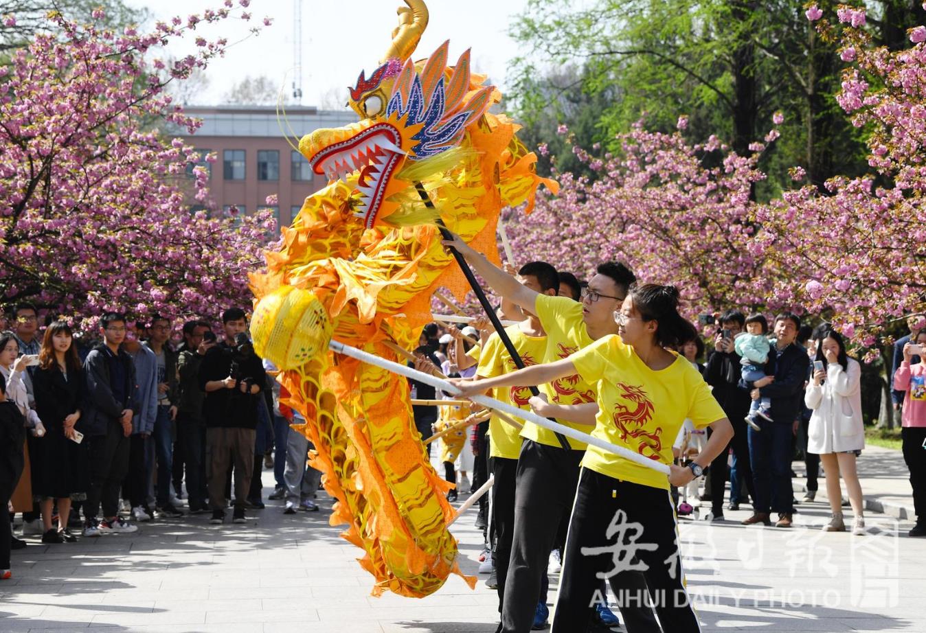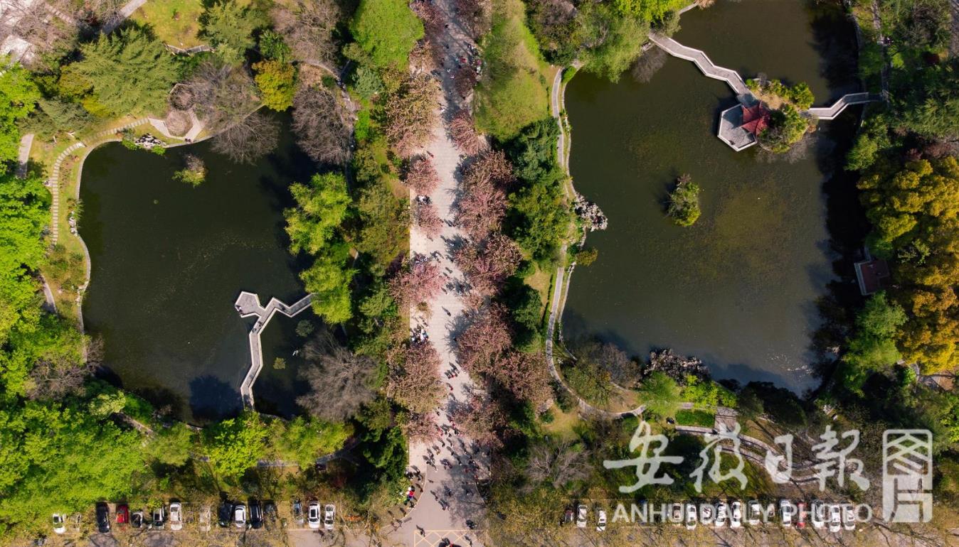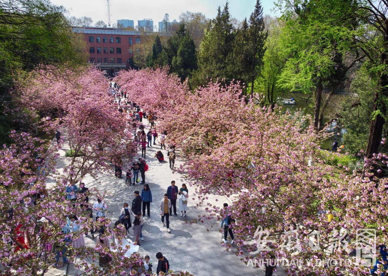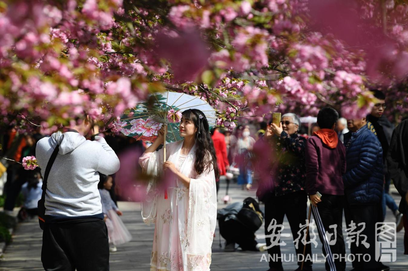 3月28日,中国科学技术大学东区百余株日本晚樱绽放,恰逢该校溯风传统文化月开幕,引来众多学生和市民前来赏花。(记者 徐旻昊)