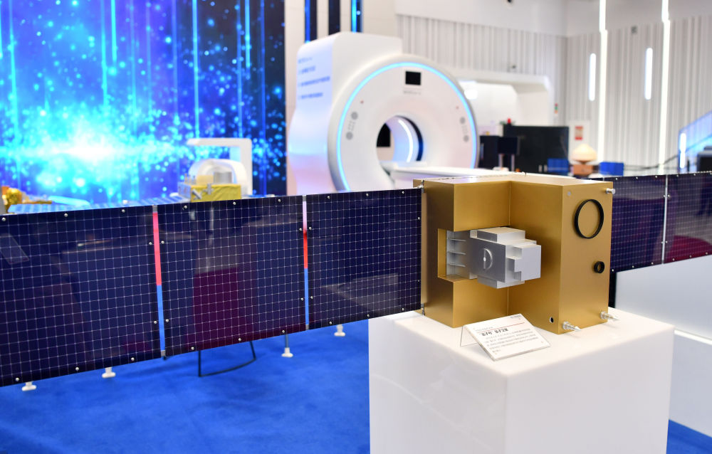 在安徽创新馆拍摄的“墨子号”量子卫星模型。新华社记者 刘军喜 摄