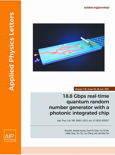 本报讯 中国科学技术大学教授潘建伟、张军等联合浙江大学教授储涛研究组,通过研制硅基光子集成芯片和优化实时后处理,实现了速率达18.8Gbps的迄今最快的实时量子随机数发生器。相关成果日前以封面论文形式发表于《应用物理快报》。