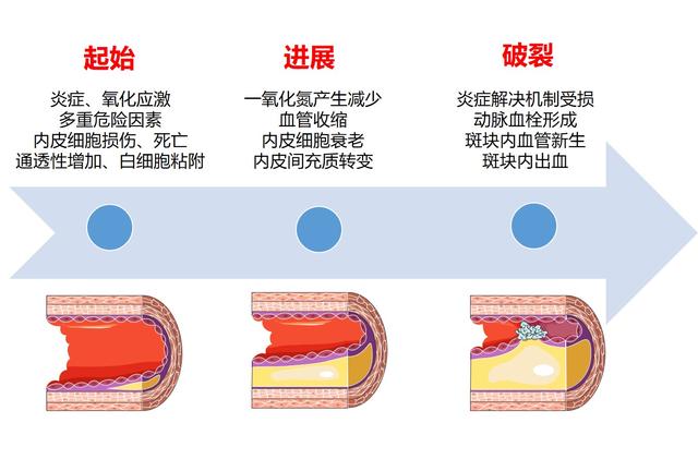 内皮功能紊乱与动脉粥样硬化(会导致冠心病、脑梗)的进展(中国科学技术大学供图)