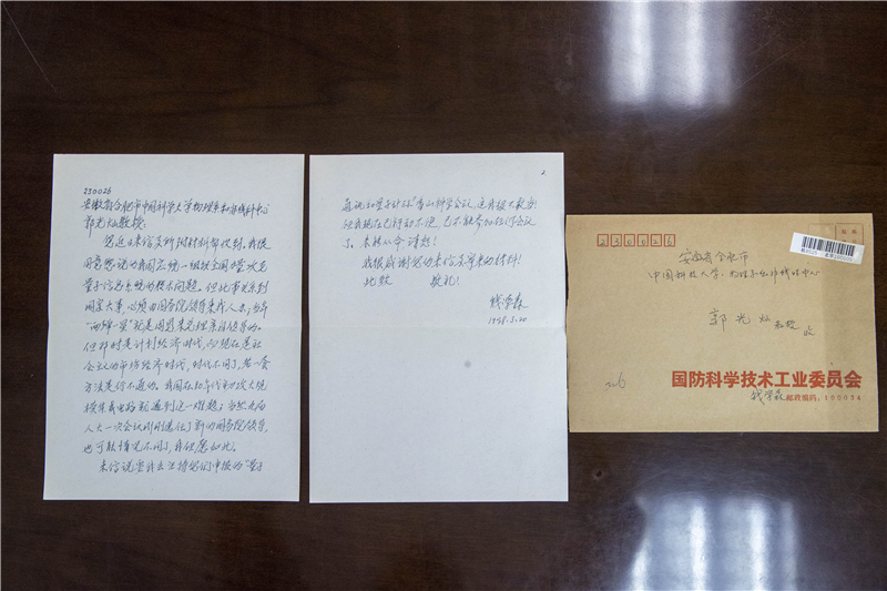 在他的桌上摆着两张泛黄的信纸,是1998年钱学森寄给他的回信。“当时我一心想将量子信息在国内发扬光大,邀请钱老来主持香山科学会议。”郭光灿回忆道。手书的几百字,纸短情长。就“国家大事”书信讨论,一来一回,足以感受到两代科学家对“科教报国”的深情。