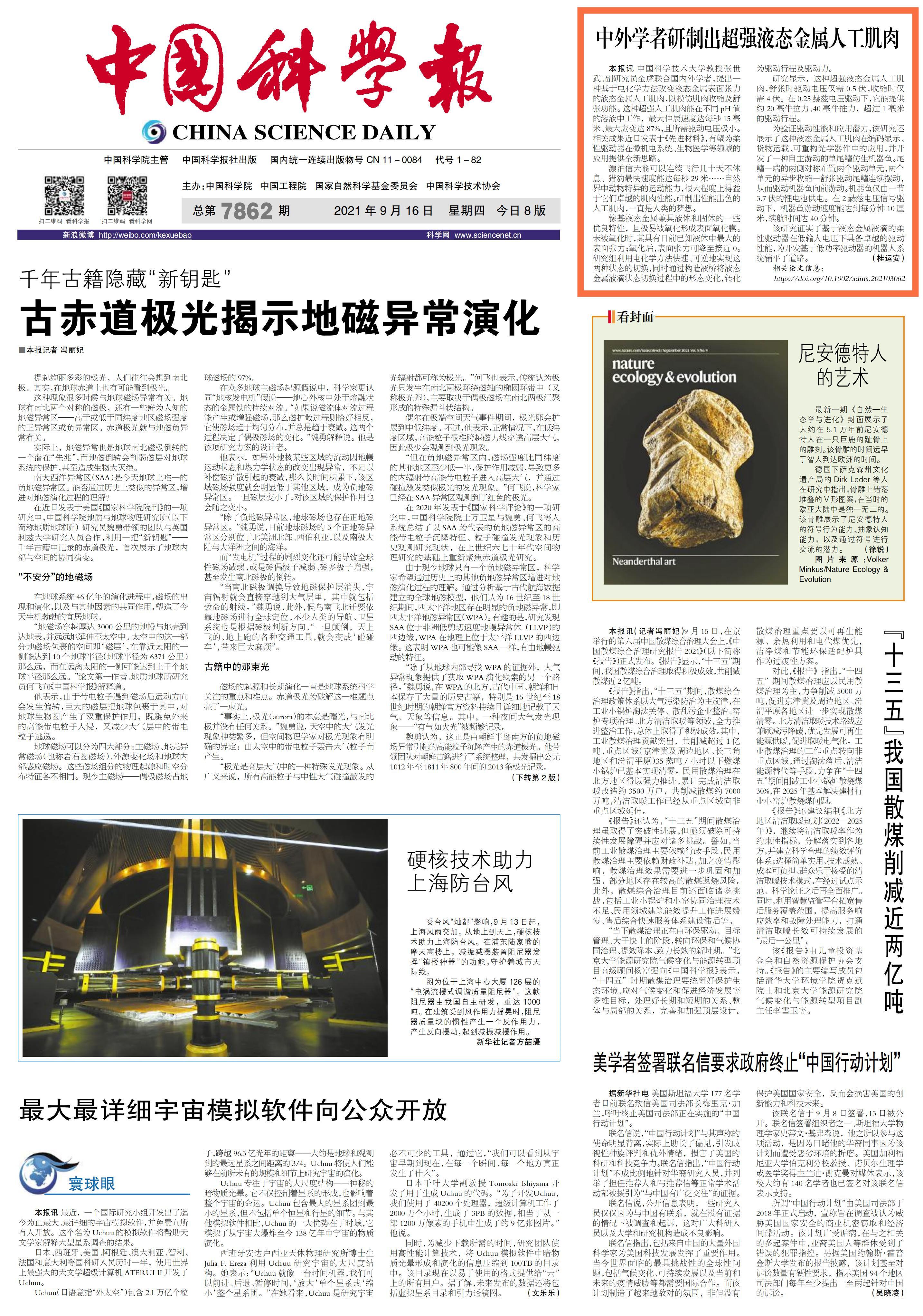 《中国科学报》 (2021-09-16 第1版 要闻)