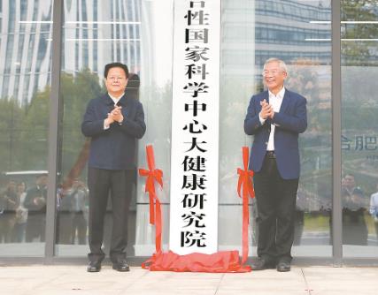 10月8日上午,省委书记郑栅洁在合肥调研人才工作并为合肥综合性国家科学中心大健康研究院挂牌。本报记者 徐国康 摄