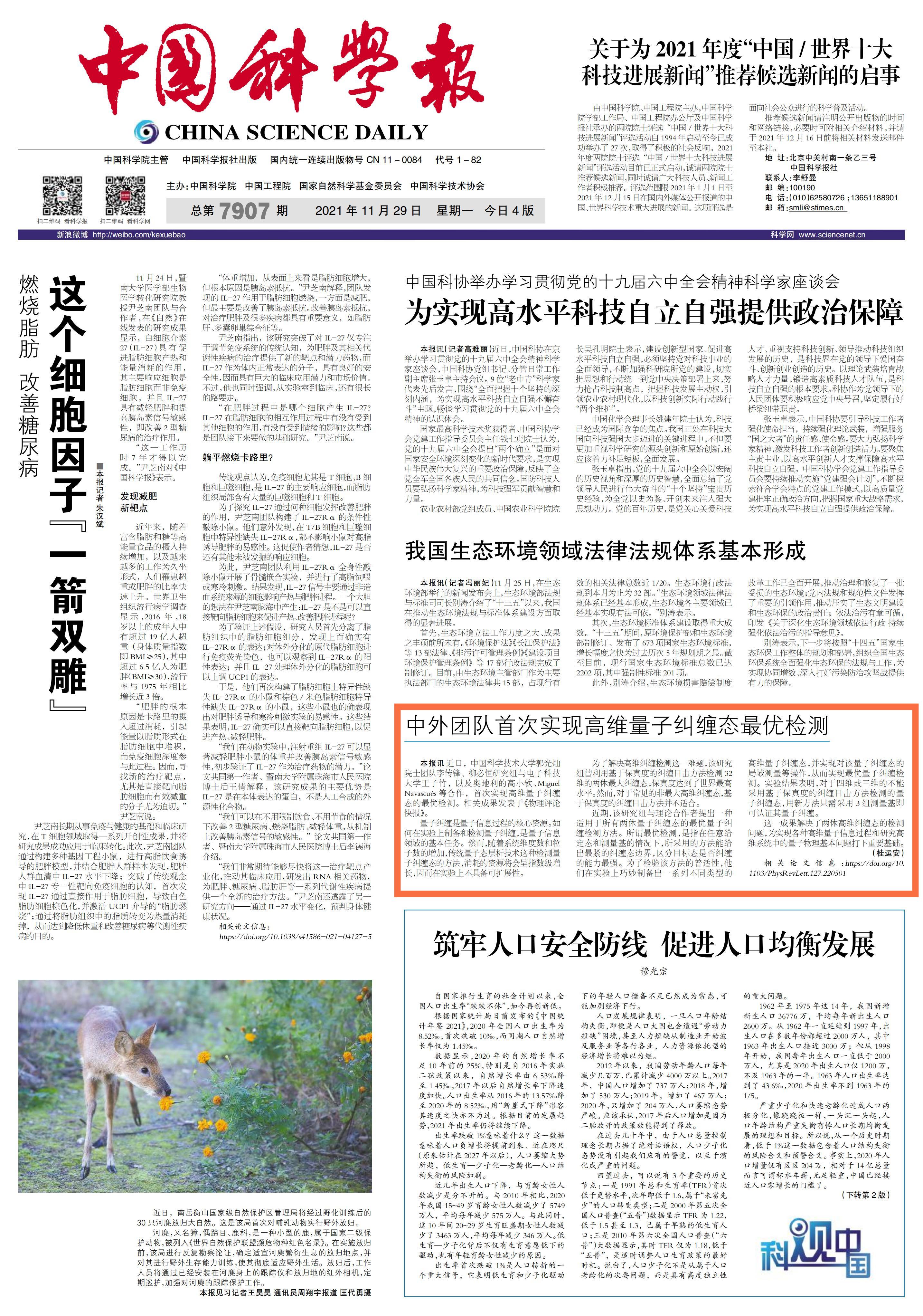《中国科学报》 (2021-11-29 第1版 要闻)