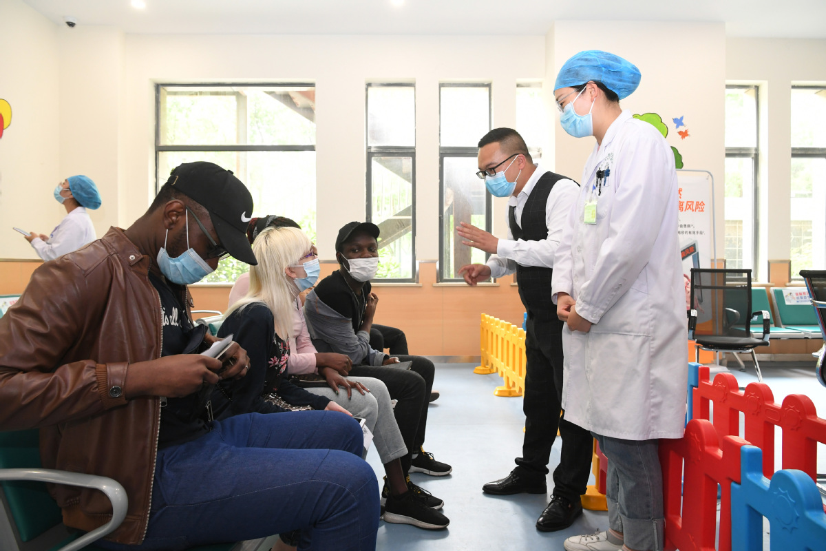 Medical workers brief foreigners things to look out for after receiving COVID-19 vaccinations in Shushan district of Hefei, Anhui province, this month. [Photo by Han Suyuan/China News Service]Academic atmosphere, opportunities in high-tech industries cited as reasons