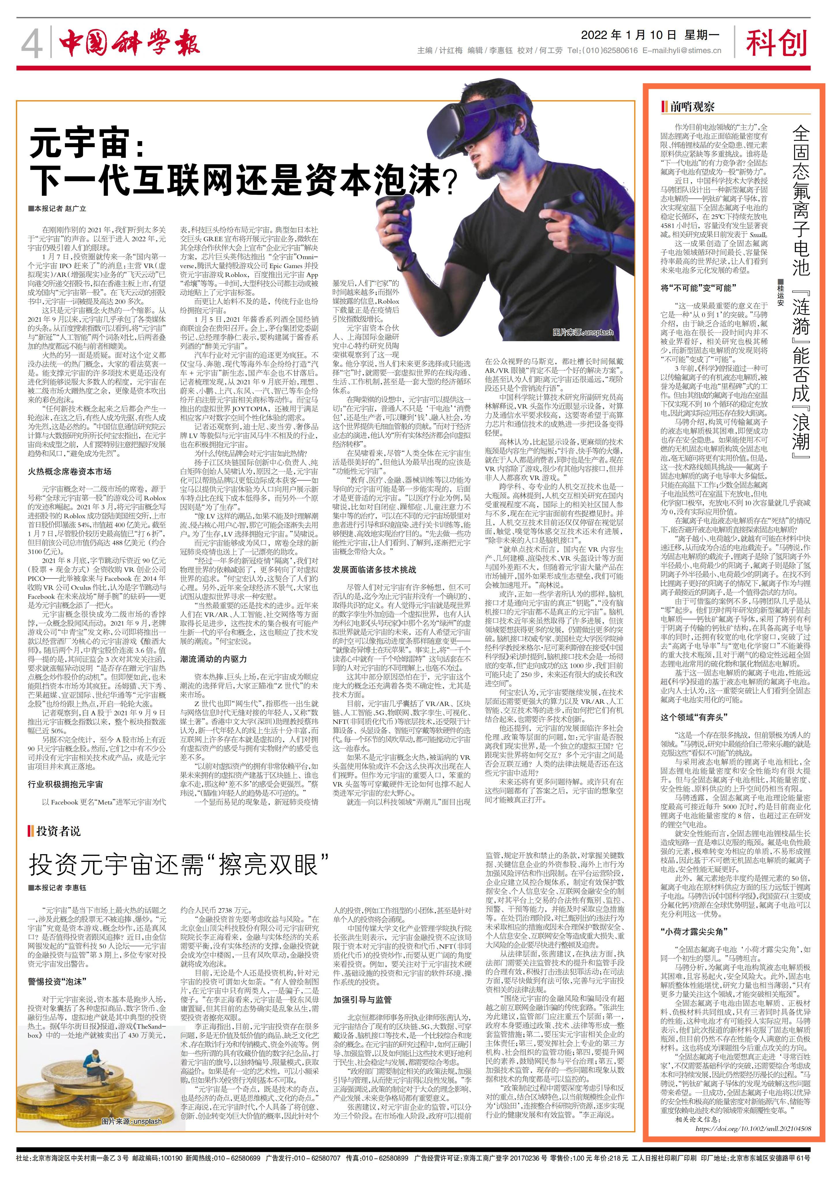 《中国科学报》 (2022-01-10 第4版 科创)