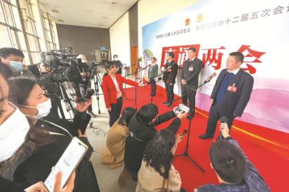 1月16日上午,省政协十二届五次会议开幕会后,首场“直通两会”活动如期开启。一方红毯,四支话筒,来自不同界别的四名省政协委员走上“委员通道”,围绕打造“三地一区”等备受关注的热点、焦点问题,现场回答了记者提问。
