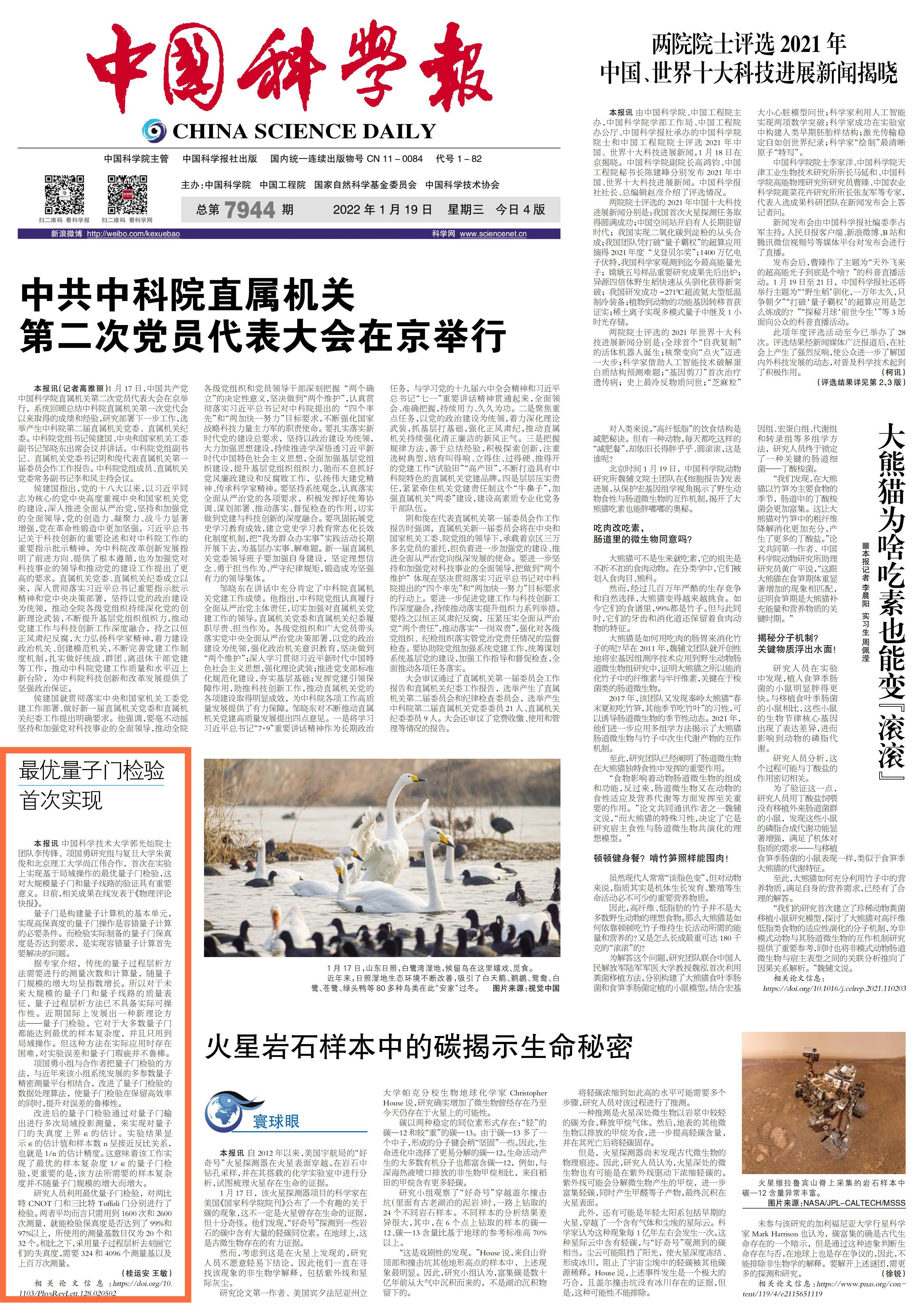 《中国科学报》 (2022-01-19 第1版 要闻)