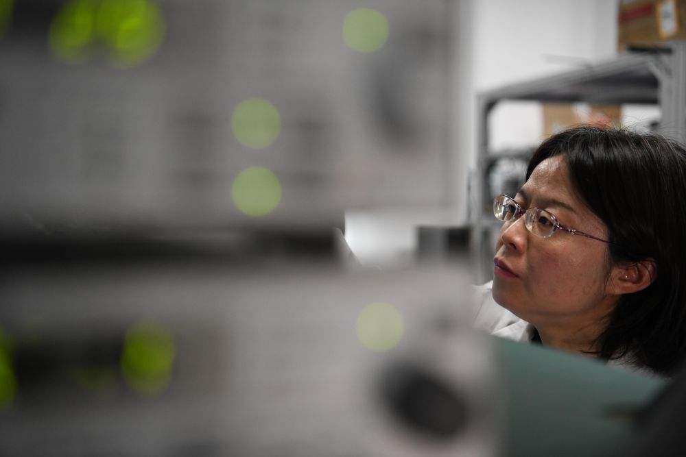 3月6日,在中国科学技术大学内,彭新华教授在中国科学院微观磁共振重点实验室内调试设备。