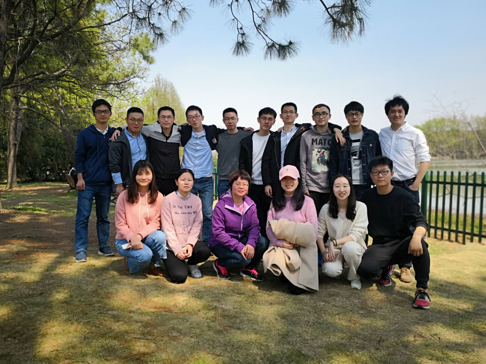 2019年3月13日,彭新华教授(前排左三)与团队成员在合肥植物园进行户外活动(受访者供图)。