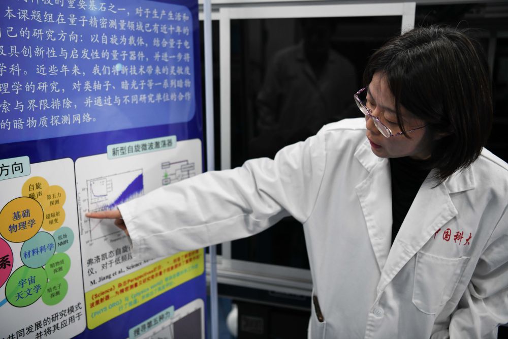 3月6日,在中国科学技术大学内,彭新华教授在中国科学院微观磁共振重点实验室内介绍团队的研究方向。