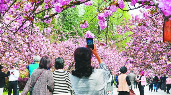 3月30日,中国科学技术大学学生在校内赏樱花。 记者 郭如琦 摄
