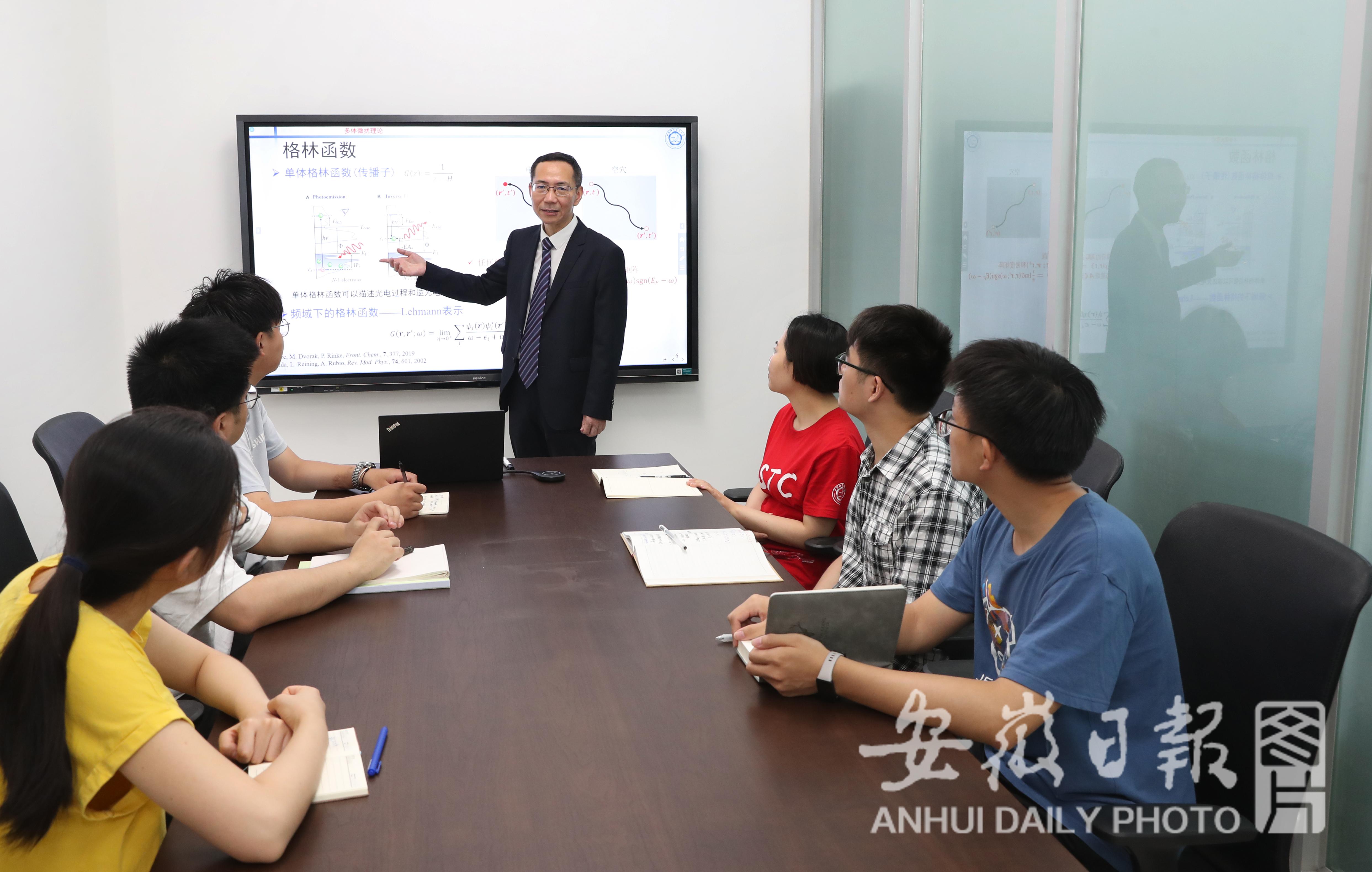 杨金龙院士为学生讲解密度泛函理论的优点和缺点。