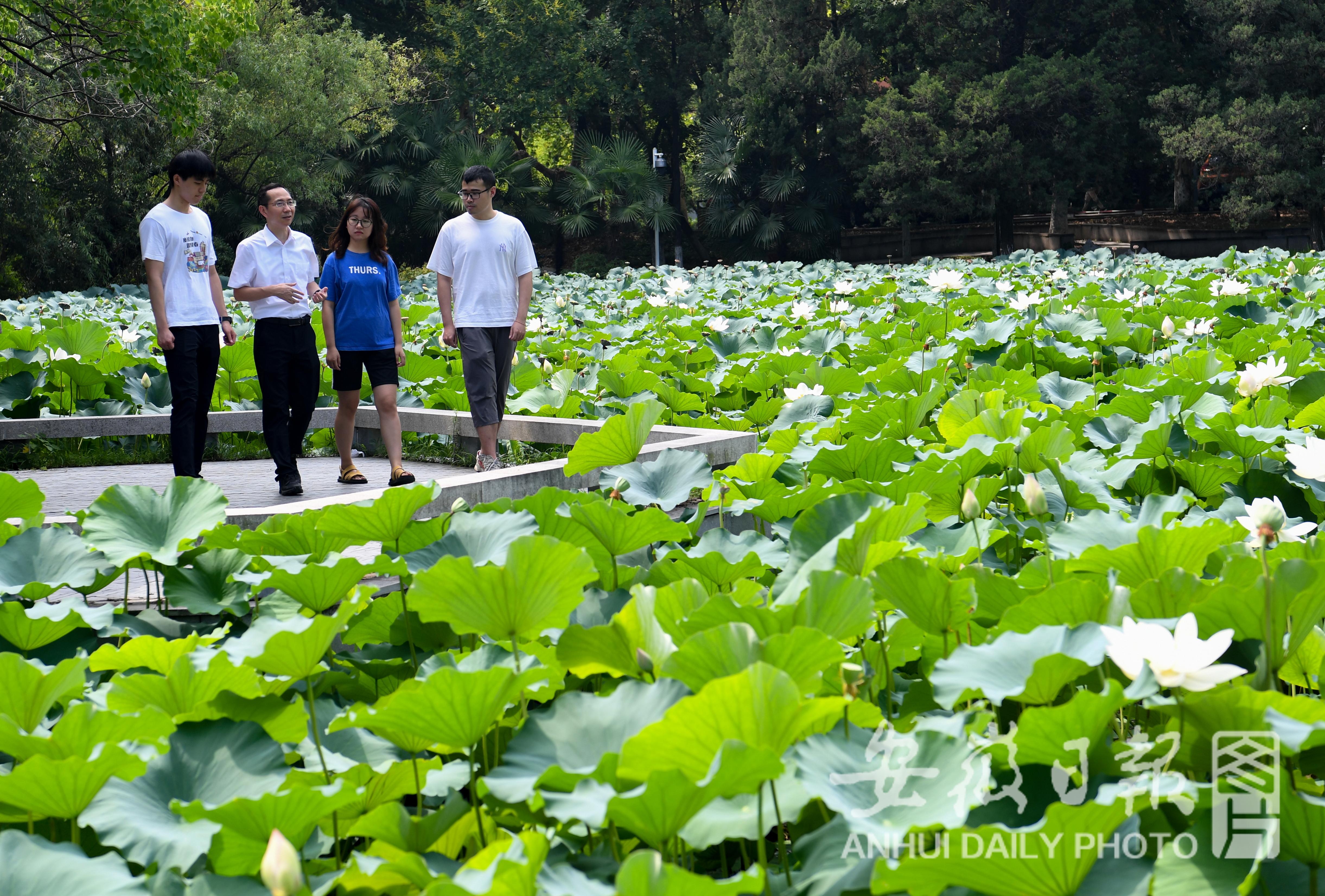 漫步眼镜湖,杨金龙院士与学生们交流科研心得体会。