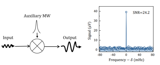 科学研究中,实现对高频微波的高灵敏测量能够为高场高频磁共振谱学、太赫兹成像、甚至天文学观测提供基础支撑。利用从原理上革新的量子传感技术能够大大提升微波的测量灵敏度,在过去的十几年中得到了广泛的研究和发展。目前,常见的量子传感器包括里德堡原子、原子磁力计、超导量子干涉仪、金刚石NV色心等。其中NV色心体系因独特的载体稳定性和室温大气环境兼容性,成为极具发展前景的固态量子传感器,提升探测灵敏度是最重要的发展方向之一。