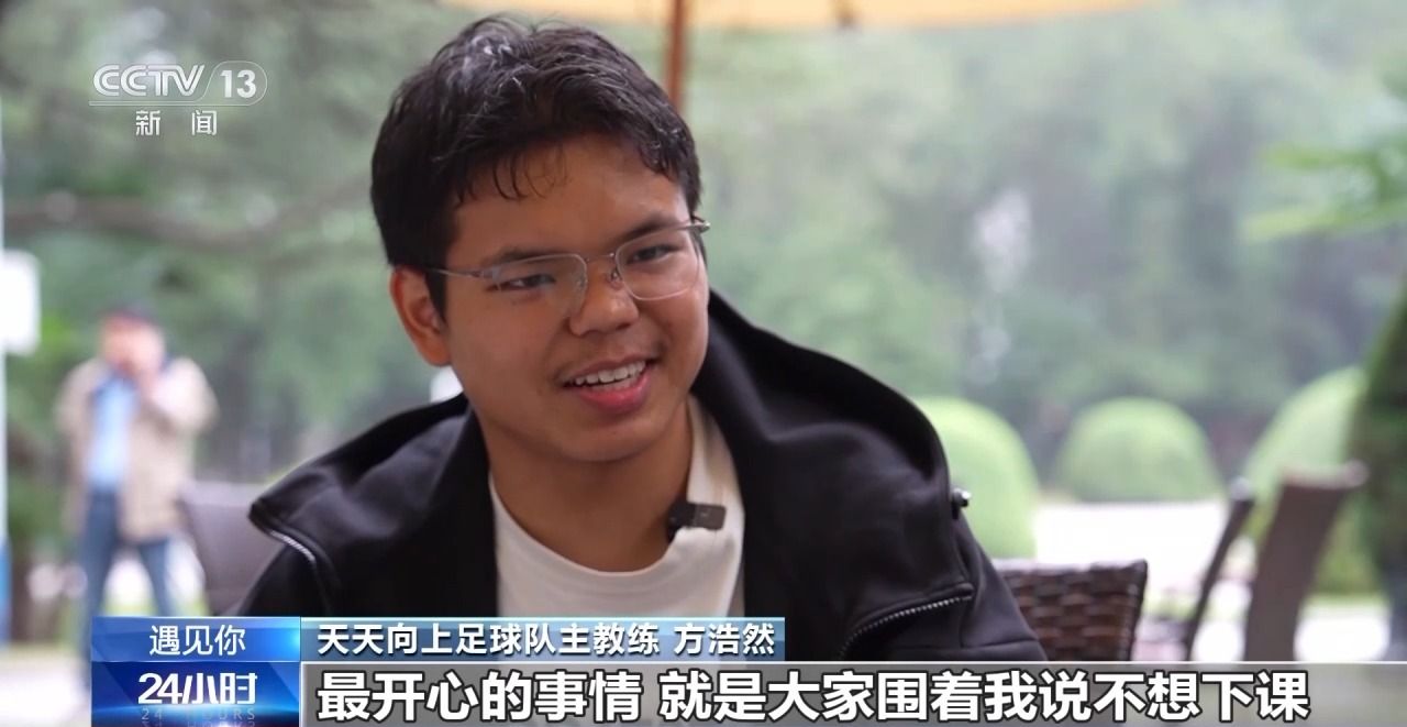 天天向上足球队主教练 方浩然:最开心的事情,就是大家围着我说不想下课,他们开始看“苏超”,看看那些球员怎么踢的,这也让我很开心。